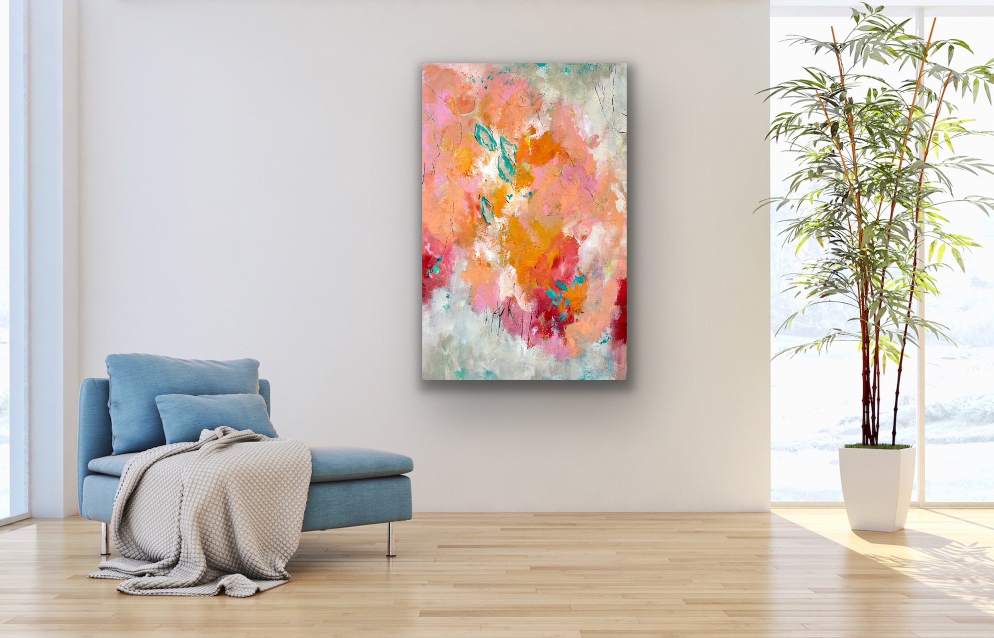 Meine persönliche Motivation für dieses Werk entstand aus dem tiefen Wunsch, die Erfahrung des Neubeginns und die Entschlossenheit, trotz aller Hindernisse weiterzumachen, auf die Leinwand zu bringen. Ich möchte die Betrachter dazu anregen, in sich selbst die Kraft zu entdecken, immer wieder aufzustehen und ihre Ziele mit Zuversicht zu verfolgen. Die lebendigen Farbtöne und die dynamischen Kohlelinien im Werk erzeugen eine pulsierende Energie, die Hoffnung und Positivität ausstrahlt. Sie erzählen von der Entschlossenheit, die notwendig ist, um sich über das Gewohnte hinauszuwagen und das eigene Potenzial zu entfalten.